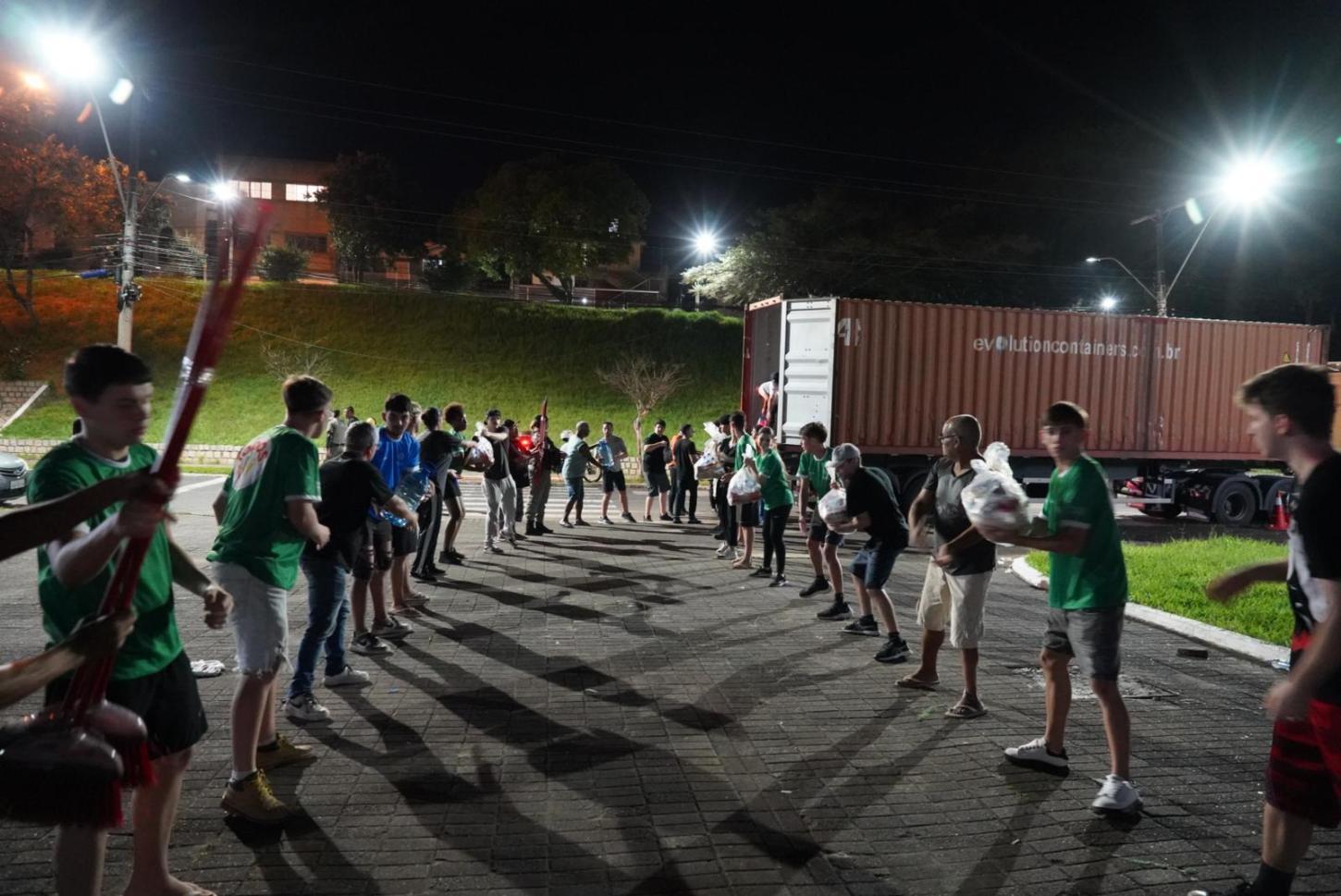 Guaíba recebeu cerca de 20 toneladas de alimentos de empresários de Itapema, Santa Catarina, na noite do dia 7. As doações serão encaminhas para cerca de 70 abrigos que estão recebendo mais de 11 mil vítimas da enchente histórica que atingiu a cidade e Eldorado do Sul.