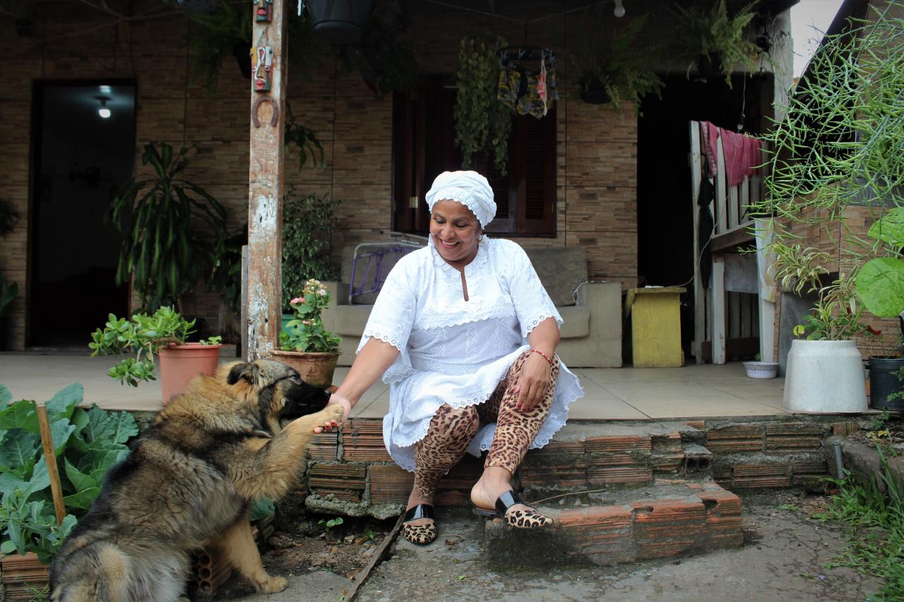 Júlia Muniz, de 57 anos, é uma mulher de fibra, muito sorridente e mãe de santo (com orgulho), além ser mãe de três filhos e avó de três netos. Sua paixão é cozinha, e na pandemia era se-reinventou: vende mocotó, lasanha, panqueca e sacolé em sua singela casa na Colina. Procurou fazer o que mais gosta, cozinhar.