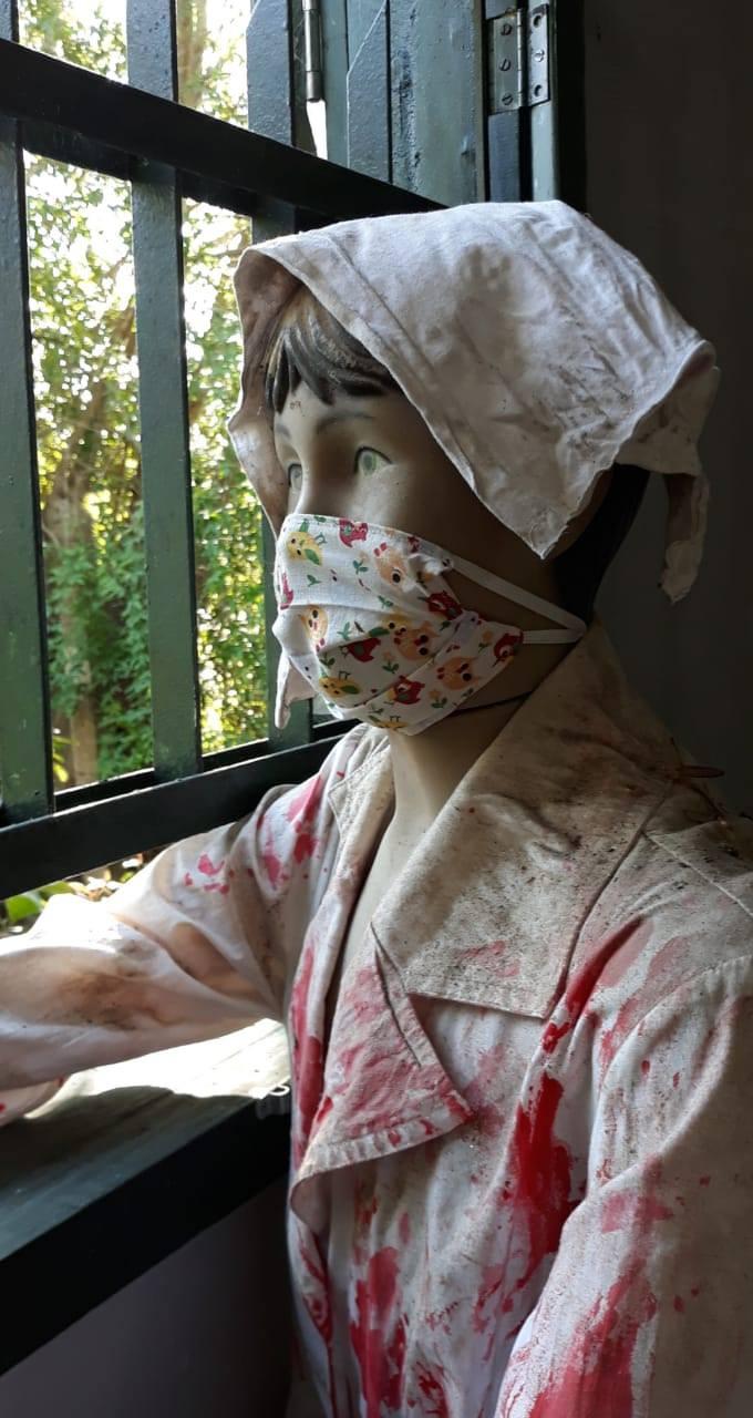 A jornalista Bete Neves teve a ideia de colocar a máscara em Mitcha, sua gata muito calma, serena e companheira. Ela aceita qualquer companhia, ficou meio assustado na hora da captura da imagem e quando colocaram o utensílio em seu rosto. Estava fazendo um tratamento em sua orelha.